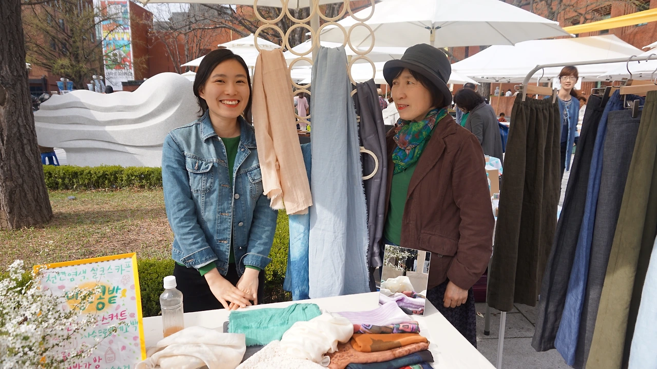 A. 마르쉐에서 사과를 파시는 분이 저희의 단골손님이기도 해요. 저희 홈페이지에서 사고싶은 제품을 미리 찜해서 장이 설때면 늘 찾아오세요. 지방에서 올라오시는 출전팀은 평소 쇼핑할 기회가 없으니까 마르쉐에 왔을 때 쇼핑을 하세요. 손님들께서 스카프와 치마 등 특별한 날에 기분내기 좋은 물건을 많이 사가시는데, 엄마와 딸이 같이 하다보니 나이드신 분과 어린 분들에게 모두 어필이 가능한 것 같아요. 어떤 때는 엄마와 딸이 함께 찾아오시기도 하더라구요!