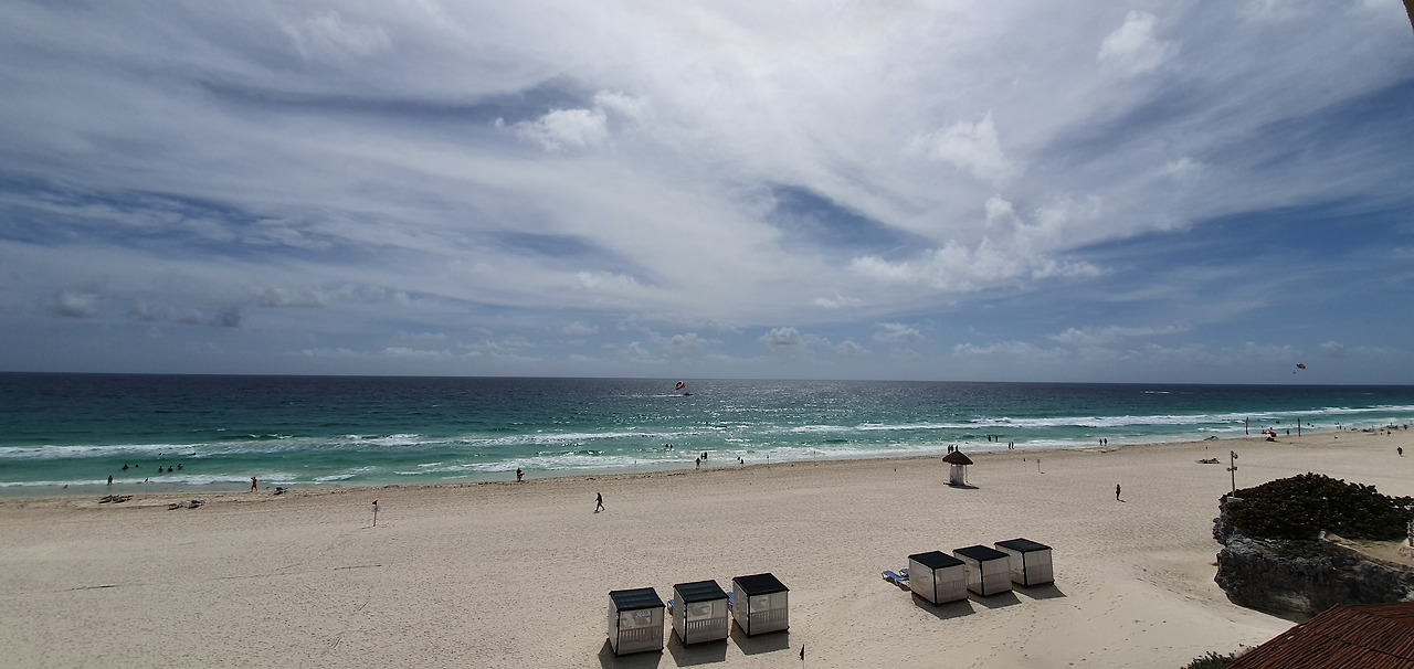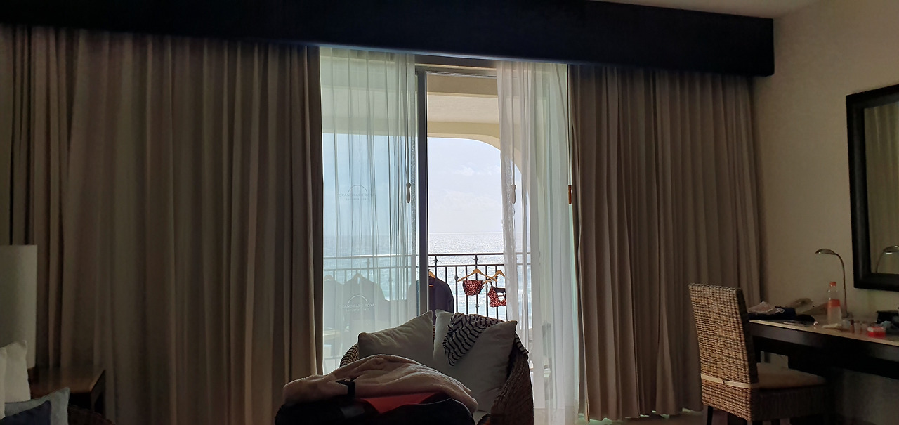 방 안 침대에서 바라보는 캐리비안 베이... 파랗게, 또 하얗게 빛나는 바다와 파도 소리를 마음속에 가득 담아본다. 이토록 평화로운 시간이 우리에게 필요했던 휴식의 시간이었으니까...