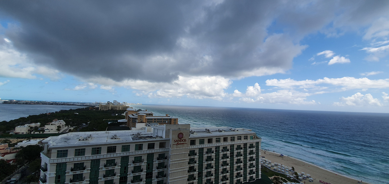 칸쿤은 6월부터 10월까지 우기이다. 우기라고 비가 내내 오는 건 아니고, 쏴아아 하고 짧고 굵게 스쳐간다. 거리에서 직접 비를 맞지 않고, 호텔 안에서 비 오는 모습을 봤는데 큰 우산을 준비하는 게 좋을 것 같다. 여행용으로 작은 우산을 챙겨 왔는데 다행히 객실 내에 장우산이 준비되어 있었다.