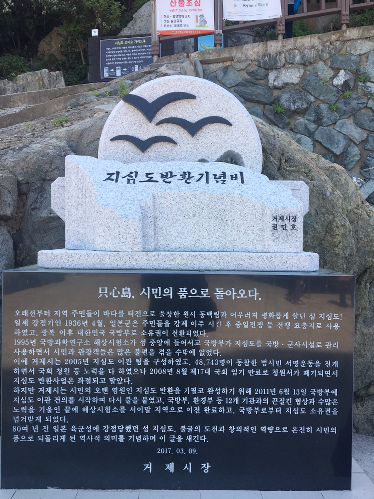 국방부의 국방•군사시설로 관리되다가 지역 주민들의 노력으로 온전히 시민의 품으로 돌아왔다는 것을 기념하기 위해 지심도반환기념비도 세워졌습니다.