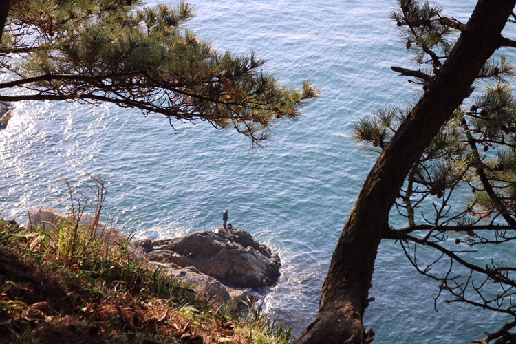 가파른 절벽이 다다랐습니다. 안전망이 없어서 넘어지면 소리소문 없이 바다 속으로 빠질 것 같다는 생각에 후덜덜 떨었습니다.