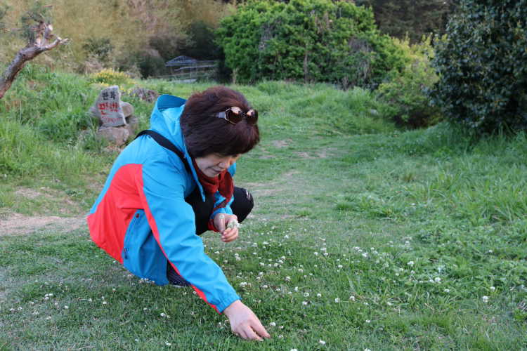 토끼풀이 보이자 본격적으로 네잎클로버 찾기에 나선 이여사님. ㅎㅎ 어느덧 지심도의 매력에 푹 빠져있는 모습입니다.
