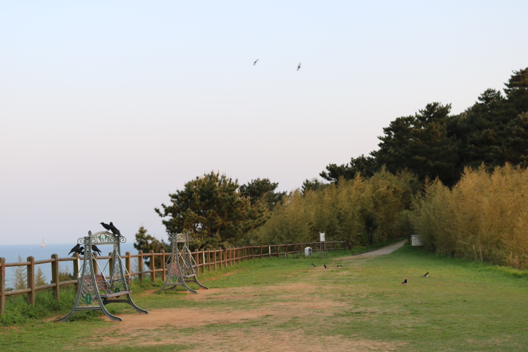 그런데 말이죠, 이 섬에 까마귀와 까치가 참 많아요! 유유상종이라고 까마귀는 까마귀대로, 까치는 까치대로 따로 놉니다~