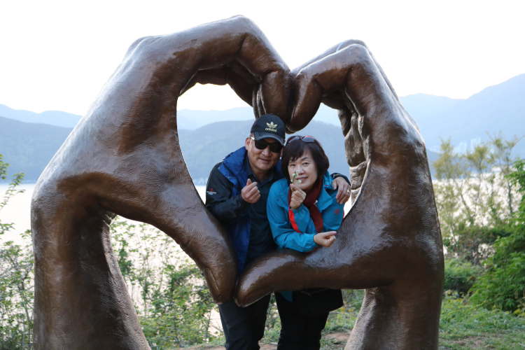 맞아요! 저기예요~! 걷다보니 '러브러브 하트샷'이 보입니다. 사랑이 이뤄지는 섬을 주제로 만든 조각품이라고해요~