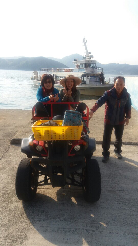 지심도에 도착하니 민박집 차가 우리를 반겨줍니다. 사장님께서 짐을 싣기 위해 빨간차가 대기할거라고 하셨는데, 이렇게 깜찍한 차일거라곤 상상도 못했어요~