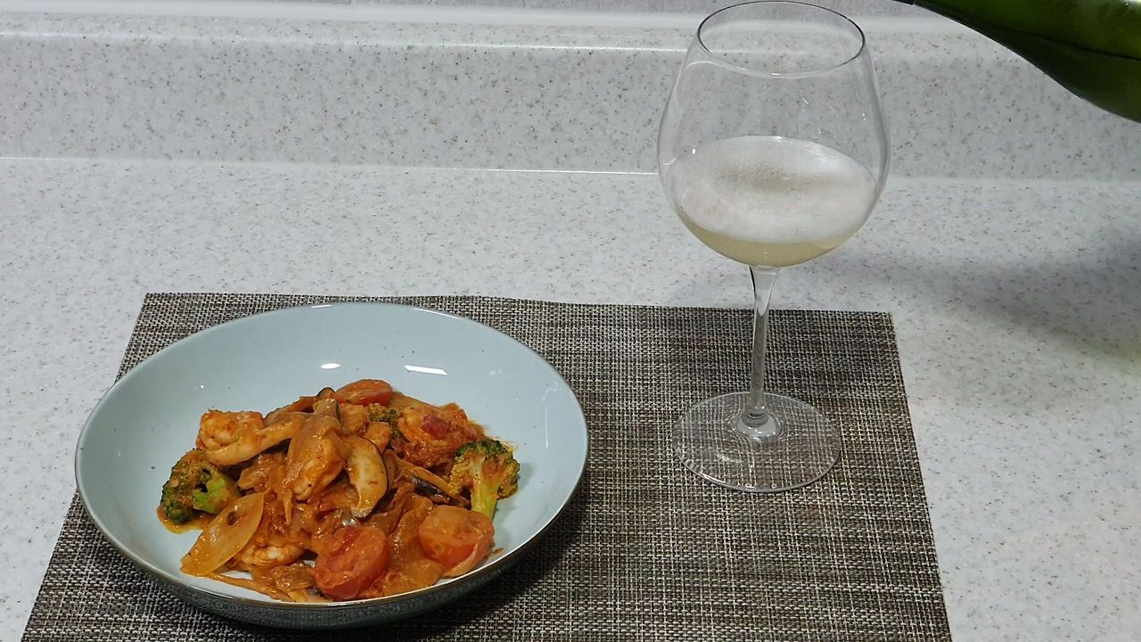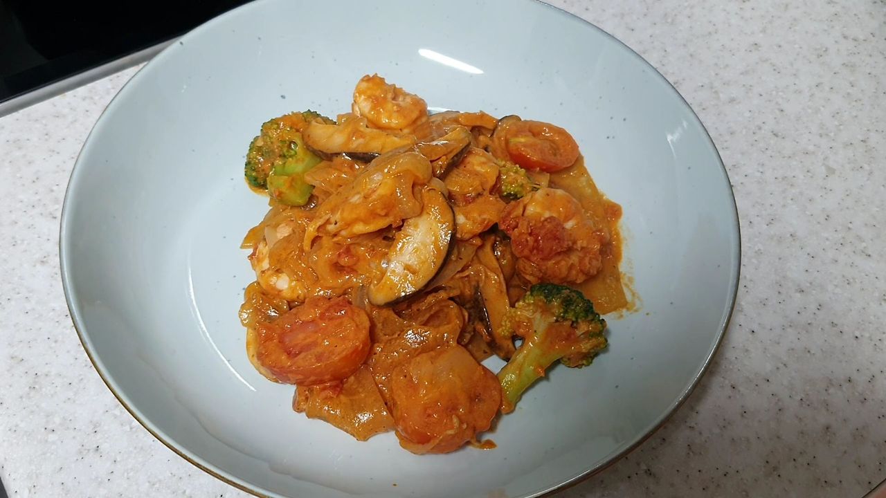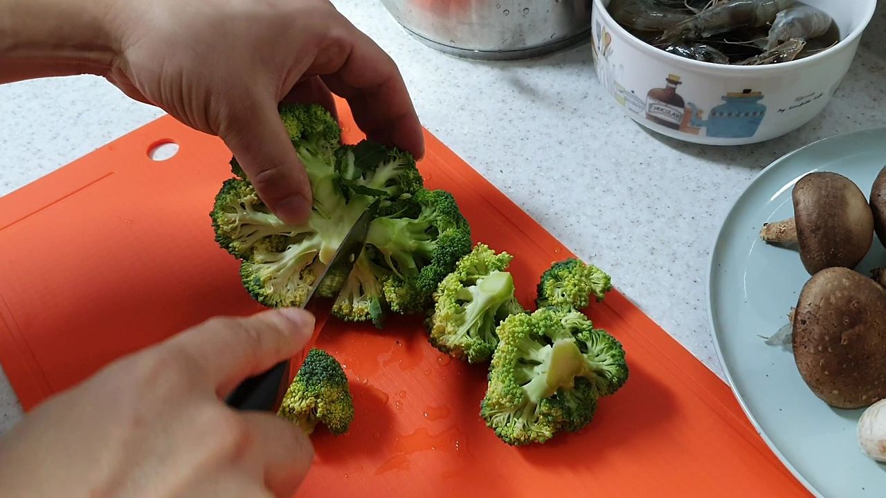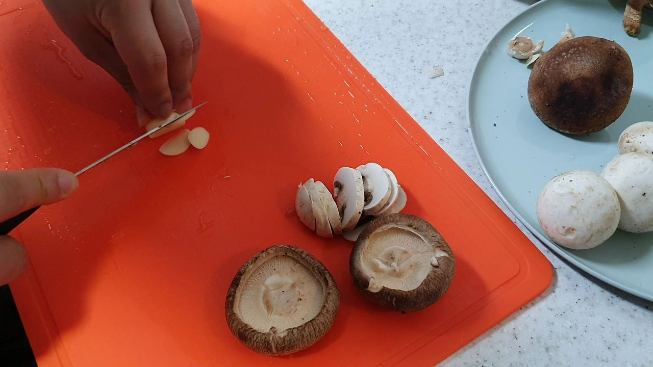 셰프인 남편이 시범을 보여주면 따라서 함께 요리했다. 브로콜리, 양파, 마늘, 버섯 썰기 뿐만 아니라 새우 껍질을 벗기고 새우 똥이라 불리는 내장 빼기까지 함께했다. 팔팔 끓는 물에 당면을 익히고 브로콜리를 데쳤다. 그리고 나머지 재료들은 마늘, 버섯, 양파 순으로 넣고 볶았다. 가장 먼저 마늘을 볶으니 마늘향이 퍼지면서 맛있는 음식이 탄생할 것 같은 예감이 들었다.