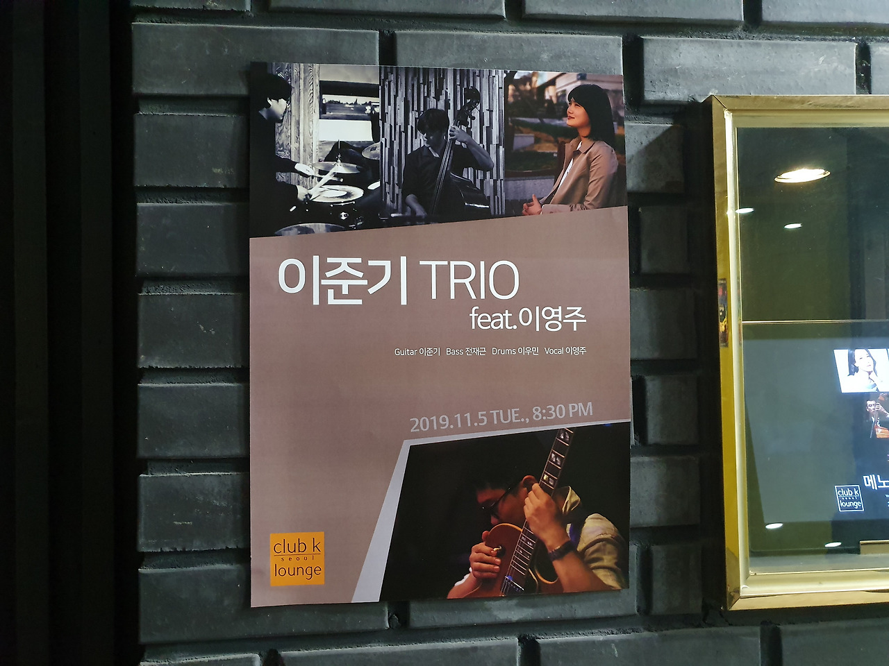회사에서 잠시 모든 걸 내려놓고 와인과 재즈에 취할 수 있는 시간을 마련해주셨다. '찾아가는 인문학' 프로그램 중 하나로 회사 근처 '클럽K 서울 라운지'란 근사한 공간에서 이준기 트리오의 연주를 들었다.