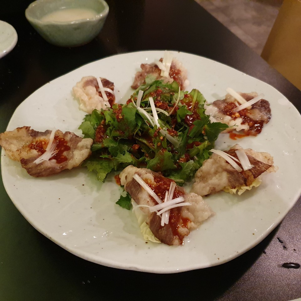 기본찬으로 햇볕에 말린 멸치와 장인이 만든 부각이 나왔습니다. 다시마 부각을 맛보니 어렸을 때 어머니께서 만들어주시면 맛있게 먹던 기억이 났어요. 바삭바삭한 식감에 하나씩 집어먹다 보니 너무 맛있어서 세 접시나 먹었습니다.(하하)