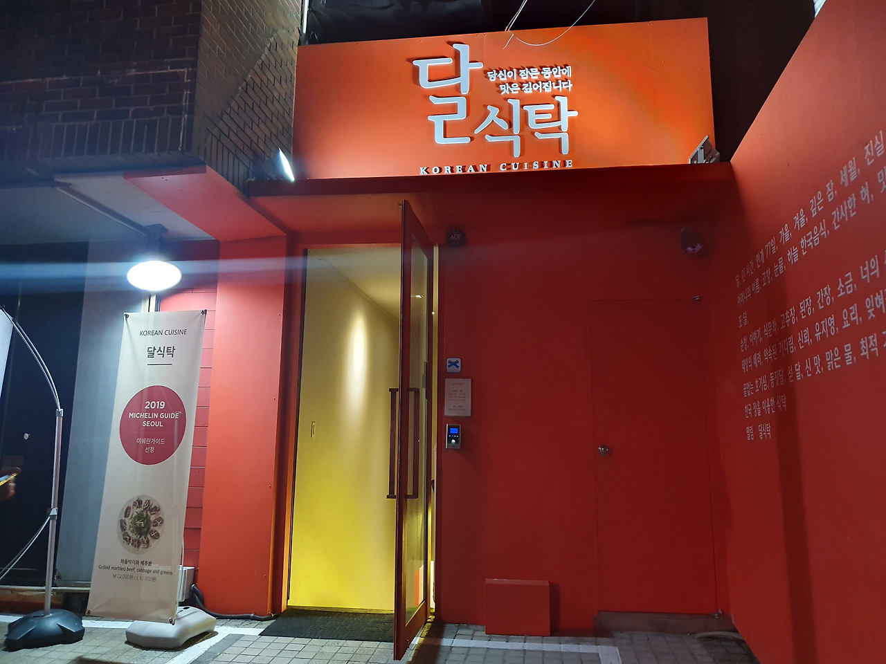 가로수길에 있는 '달식탁'은 순창의 장만드는 법을 3대째 유지해오며 장을 이용한 요리를 만드는 레스토랑입니다. '접시'를 뜻하는 미쉐린 가이드 라시에트 픽토그램을 보며 기대하는 마음으로 들어갔습니다.