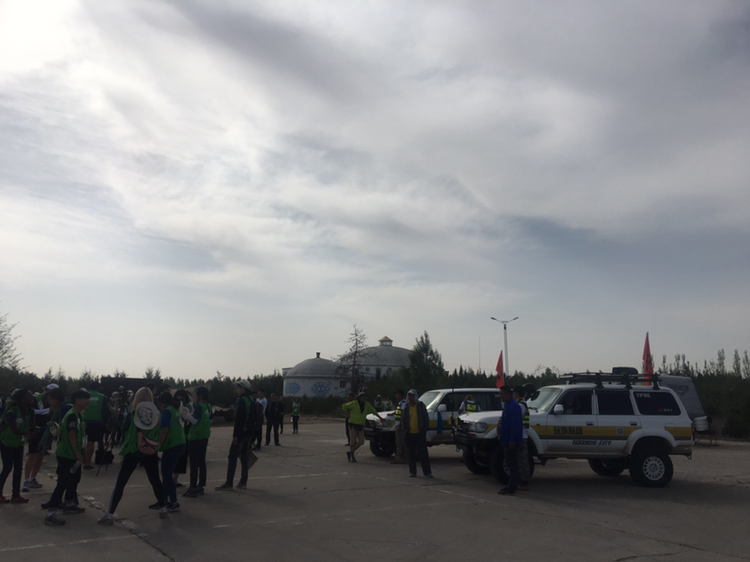 하늘도 맑고 파랗구요! 그 위로 조별로 높은 깃발을 펄럭이며 선두로 도착했습니다. 우리 팀 맨 앞으로 지프차가 앞장섰는데 사막을 가로질러 달리는 자동차가 멋있더라구요!! 'Goodbye city'라는 문구도 마음에 들었습니다. 이곳에서는 인터넷이 잘 안 터진다고 해서 와이파이를 신청하지 않았는데 스마트폰을 멀리하고, 자연과 가까이할 수 있는 시간도 참 좋아요. 매일 컴퓨터 화면, 스마트폰을 바라보며 지내면 시력도 안 좋아지고 너무 많은 정보를 접하며 나에게 정말 중요한 건 오히려 잊고 지내기 쉬운 것 같아요. 여기서 만난 친구들과는 짧은 시간에도 가까워지도, 깊은 이야기도 나누게 되네요.