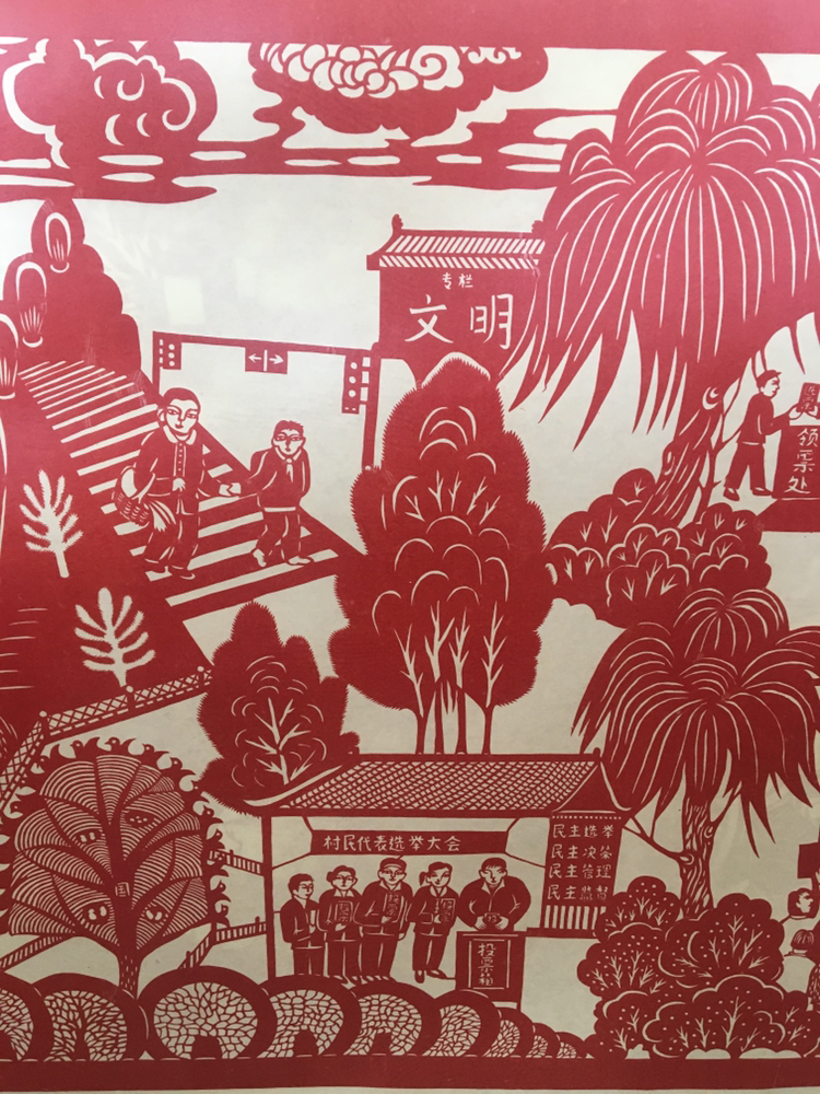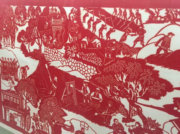 중국의 전통공예인 전지 박물관에 왔습니다. 전지공예는 빨간색 종이를 오려서 사람이나 사물의 형상을 만드는 것으로 대중들과 아주 밀접한 예술입니다. 이곳 계시는 Zhaomeiling 선생님은 무형 문화재로 등록되었을 정도로 이 분야에서 유명하신 것 같아요. 작품을 보니 사회주의 핵심 가치관인 부강, 문명, 민주에 대해 표현한 작품도 있고, 중국의 과거와 현재의 모습을 아주 큰 작품으로 세심하게 만드셨네요!