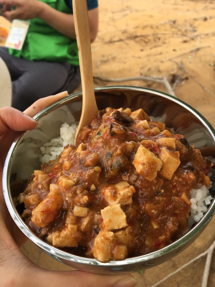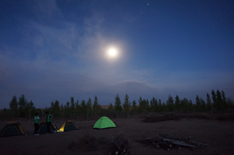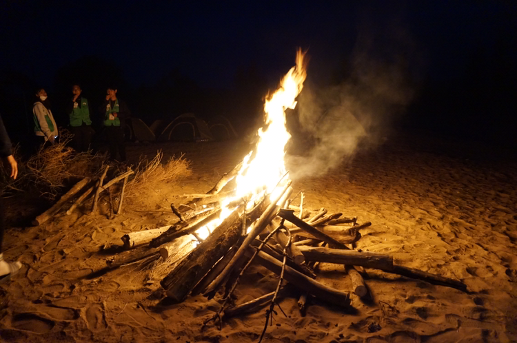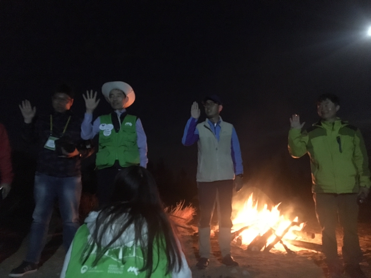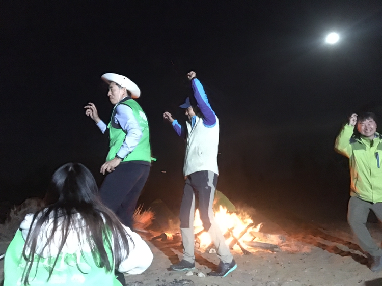 저녁은 비비고 비빔밥으로 먹고, 캠프파이어 시간이 되었다. 휘영청 보름달이 대낮처럼 밝은 날이었다. 하루종일 모래바람도 심하고, 진정한 사막의 황사가 무엇인지 보여주나 싶었는데 다행히 비도, 바람도 시간이 지나니 조용히 지나갔다.