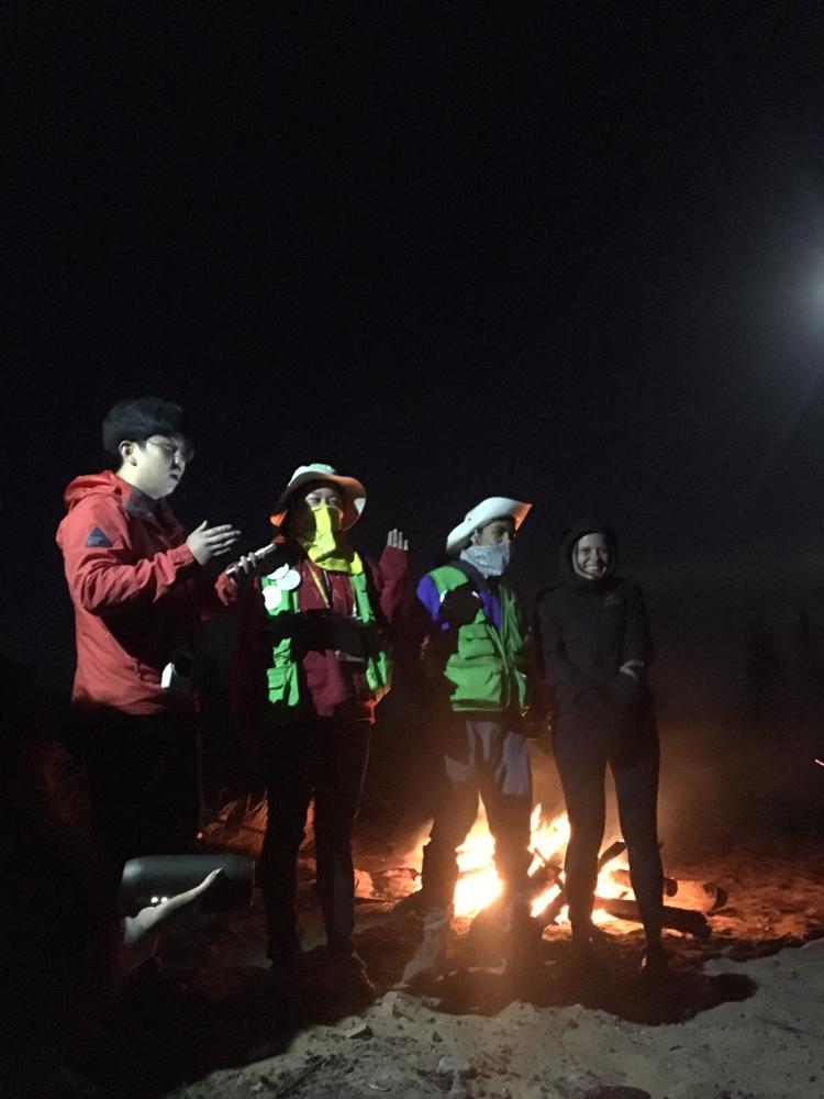 모닥불을 피우고 레크레이션을 시작했다. 레크레이션 강사 뺨치는 사회자의 진행으로 직원들과 단원들 가리지 않고 즐겁게 게임에 참여했다. 단원들이 뒤로 빼지 않고 다같이 어울릴 수 있도록 재밌게 진행한 사회자에게 박수를~~~