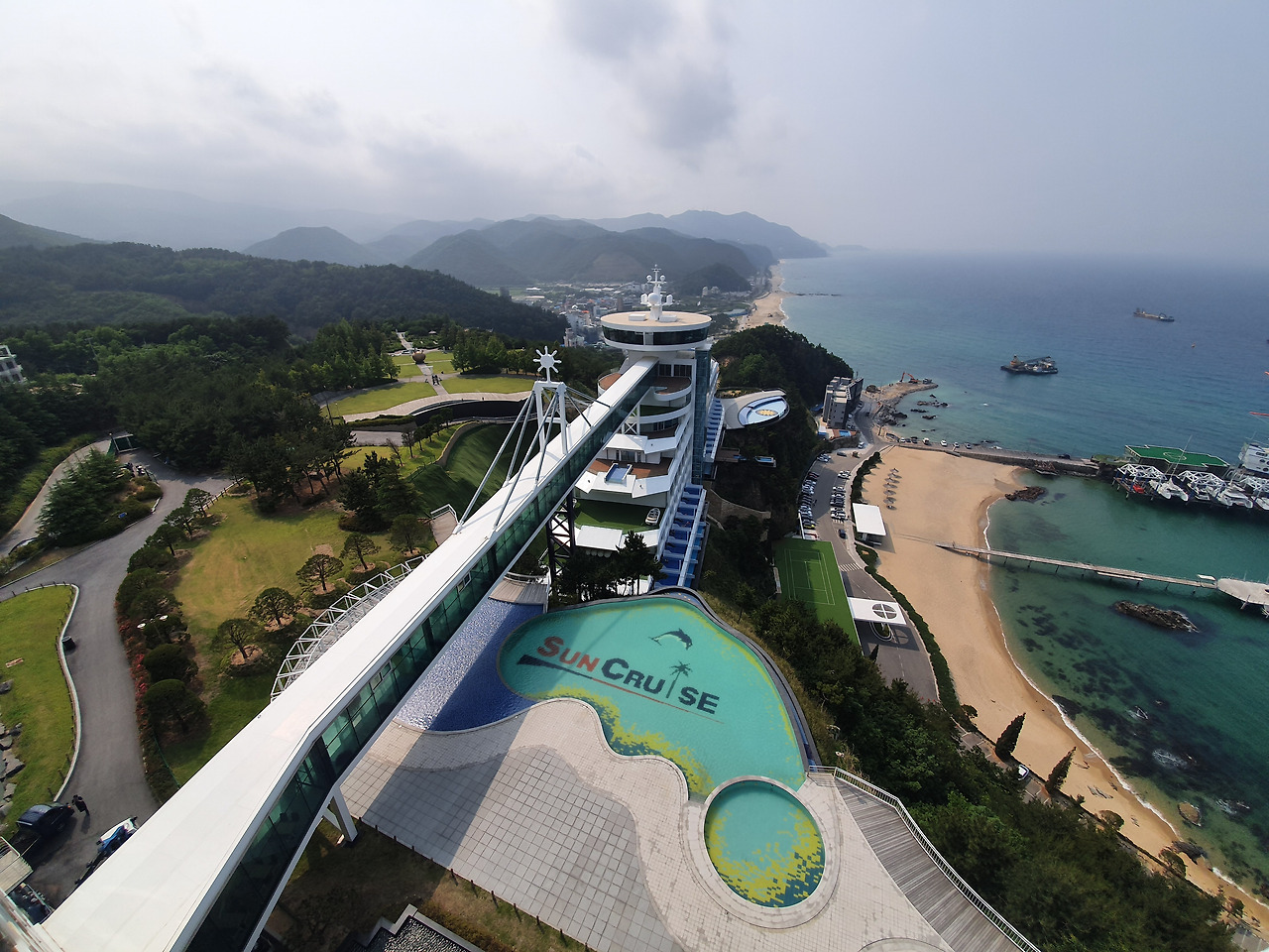 썬크루즈 호텔에 도착했습니다. 강원도 주요 관광지일 뿐만 아니라 CNN에서 일생에 꼭 한번 가봐야 할 호텔로 선정한 곳이기도 합니다.