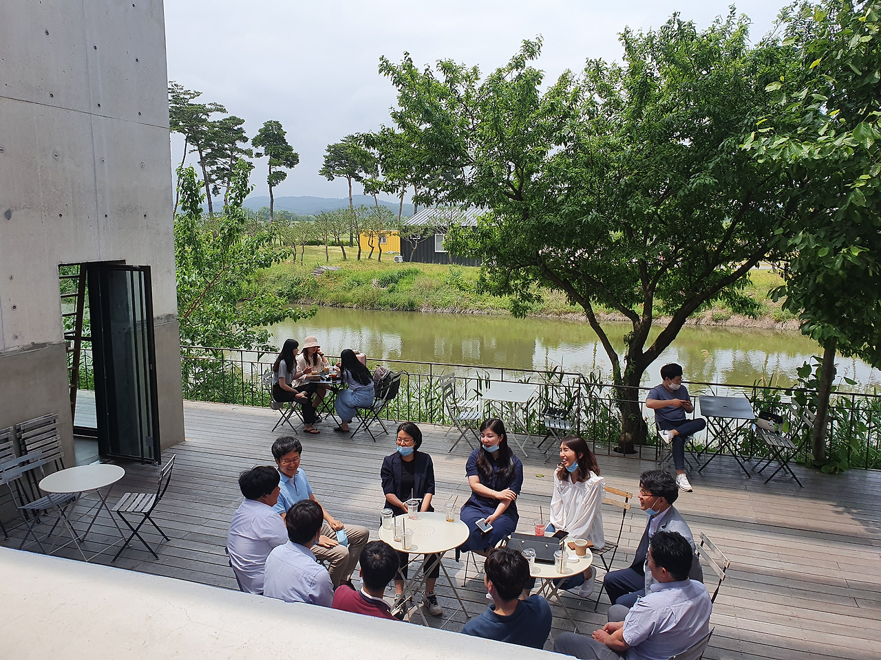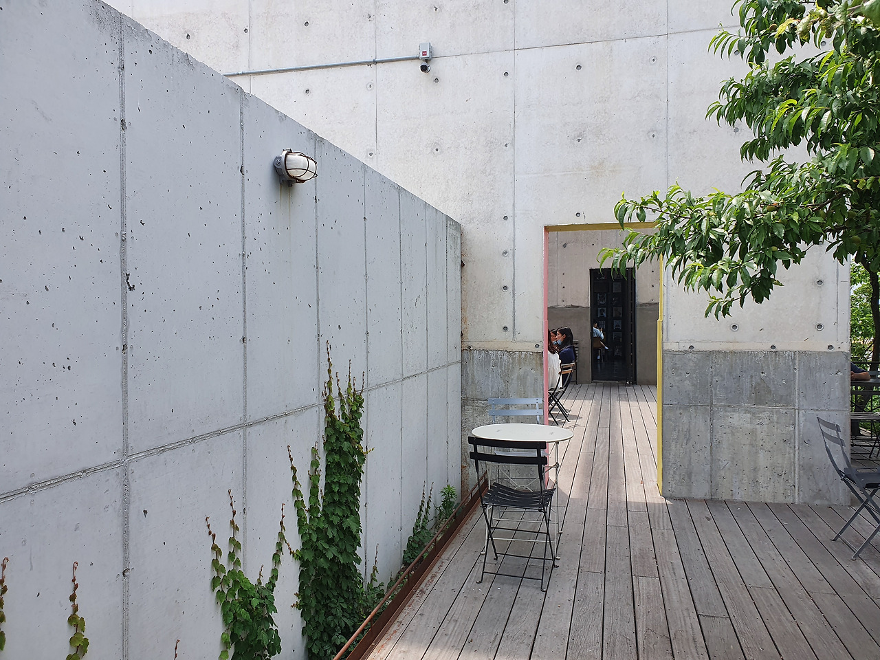 호수가 있어서 도심에 있는 테라로사 보다 자연친화적으로 꾸며져 있더라고요. 담쟁이가 있는 벽도 그대로 활용하고, 호수가 보이는 풍경에 큰 테이블도 만들어 놓고요!