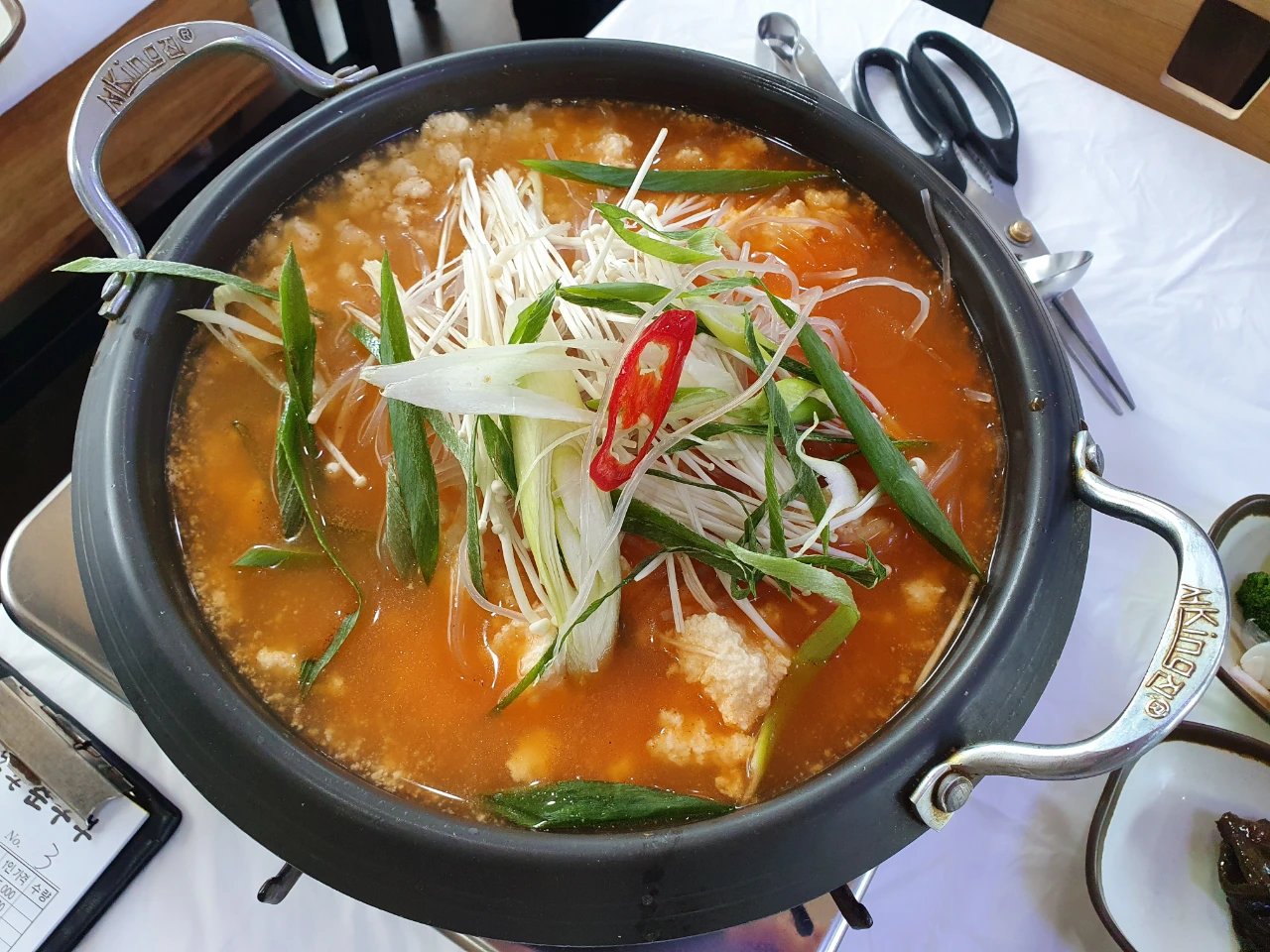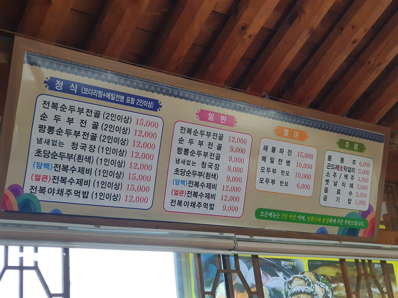 얼큰 순두부전골 2인분을 먹었어요. 초당순두부에 버섯, 당면이 들어가 보글보글 끓여서 맛보았습니다. 간이 세지 않고 담백하고, 고소한 두부 맛이 느껴집니다. 무엇보다 상추, 연근, 아삭이 고추, 고사리 등 토속적인 반찬이 입에 딱 맞았어요. 이곳에서 직접 만든 쌈장을 사서 집에서도 깻잎이나 아삭이 고추를 무쳐 먹으려고 합니다.