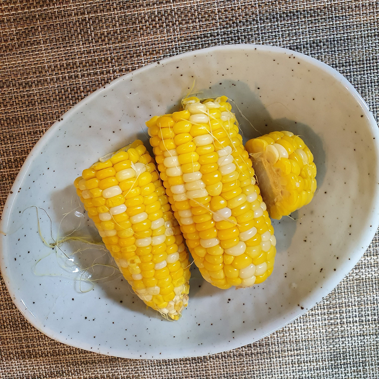 초당옥수수는 그 자체로 달아서 생으로 먹어도 맛있고, 익혀 먹어도 맛있다. 한 번은 버터를 발라 에어 프라이기로 조리해서 먹었다. 버터만 있어도 단짠의 조화가 환상적이다. 사각사각 씹히는 식감도 일반 옥수수와는 다르다. 수분이 더 많은 느낌이다. 물론 찰옥수수도 맛있지만, 초당옥수수를 맛보게 되어서 더욱 기쁘다!