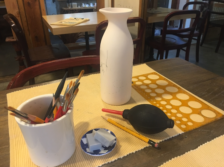 이번에 방문한 곳은 도자기에 나만의 그림을 담을 수 있는 카페 '그리기 좋은날' 입니다. 머그컵, 접시, 화병, 맥주잔 등 초벌 도자기에 담고 싶은 그림을 스케치하고, 수채화 물감으로 색칠까지 완성하면 3주 정도 후에 구워진 도자기를 받을 수 있다고 해요. 최근 실내 인테리어 중에서도 꽃에 관심을 갖기 시작한 저는 꽃을 담을 수 있는 화병을 만들어보았습니다.