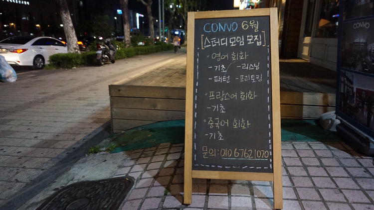 첫번째로 찾아간 카페는 영어를 못하는 주인장이 자연스럽게 영어를 쓰는 환경을 만들어보고자 하여 만들었다는 Convo를 찾아가 보았습니다. Convo는 Conversation(대화)의 준말인데요. 일상적인 대화를 나누며 자연스럽게 영어 실력을 키우고싶은 영어 왕초보에게 높디높은 외국어의 장벽을 무너뜨려주는 공간입니다.