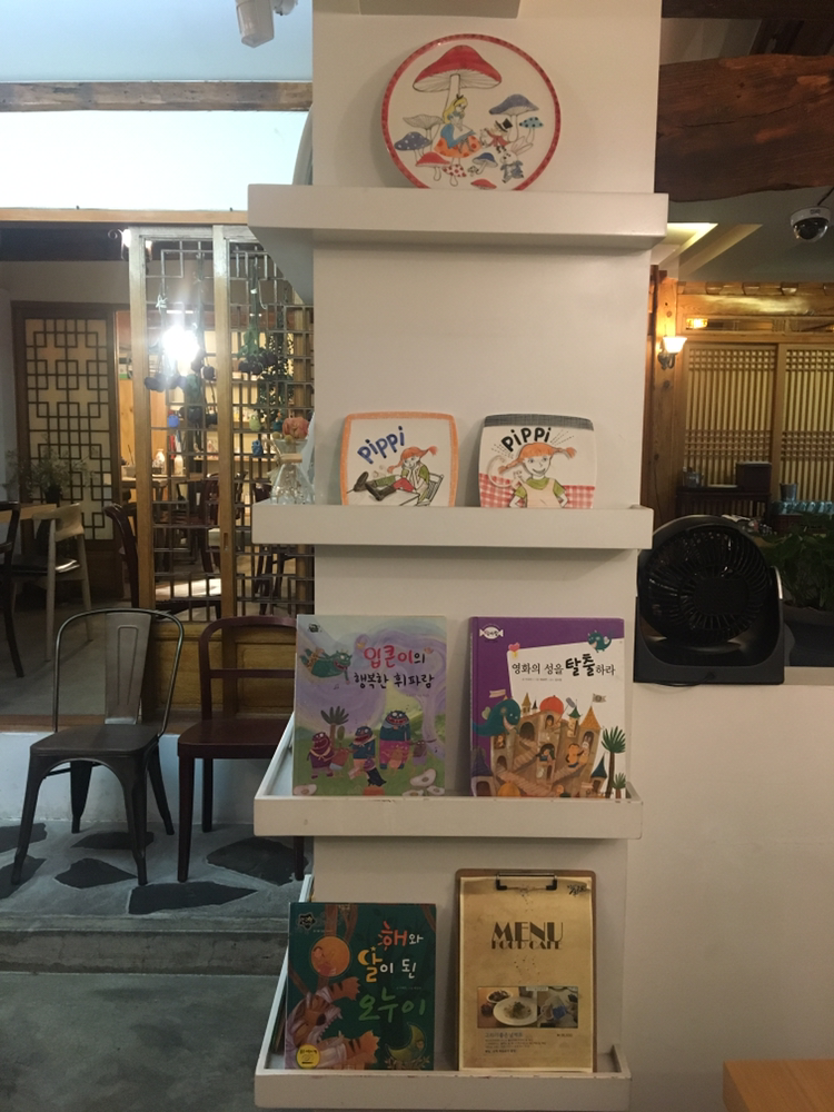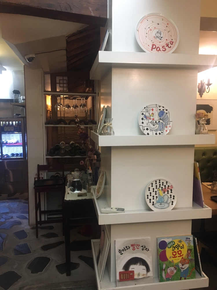 카페 내에는 이탈리안 음식과 음료, 와인과 맥주도 준비되어 있습니다. 때마침 허기져서 파니니와 리코타샐러드, 블루레몬에이드를 주문해서 맛있게 먹었습니다. 카페 주인장님이 전문 동화 일러스트 작가님이어서 곳곳에 동화 속 일러스트 원본이 멋스럽게 걸려있어 음식을 기다리는 동안 구경하는 재미가 쏠쏠했답니다.