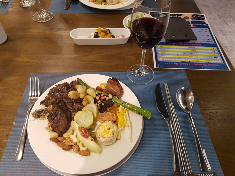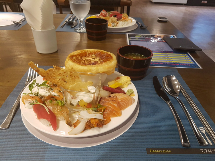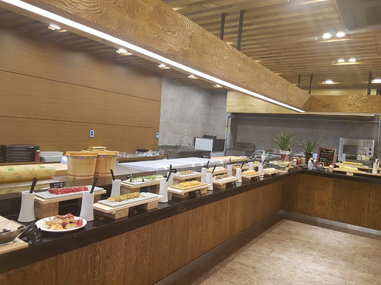 이십대 후반으로 접어들면서 회맛에 눈을 떴는데, 싱싱한 참치와 연어, 오징어, 광어회 초밥을 여한 없이 맛볼 수 있었습니다. 회도, 과일도 냉동식품을 쓰지 않고 싱싱한 상태에서 요리했다는 점이 무척 마음에 들었어요~ 한식, 중식, 일식, 양식, 주전부리, 디저트 코스가 나뉘어 있답니다. 올해 5월에 오픈했다는데 깔끔하고, 직원들도 친절하세요~ 세접시 클리어하고, 디저트로 마무리했답니다. 캬아~