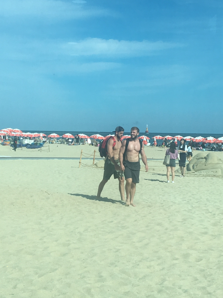 날씨 참 좋아보이죠? 그런데 정말, 정말 뜨거웠어요!! 게다가 물놀이 하려고 작정하고 간게 아니라 복장도 치마에 컴포트화 신고 있었거든요~ 파라솔 아래 비치배드에서 뜨거운 날씨를 즐기는 것도 좋지만, 좀더 색다르게 해운대를 즐기고 싶다면 이곳을 추천합니다.
