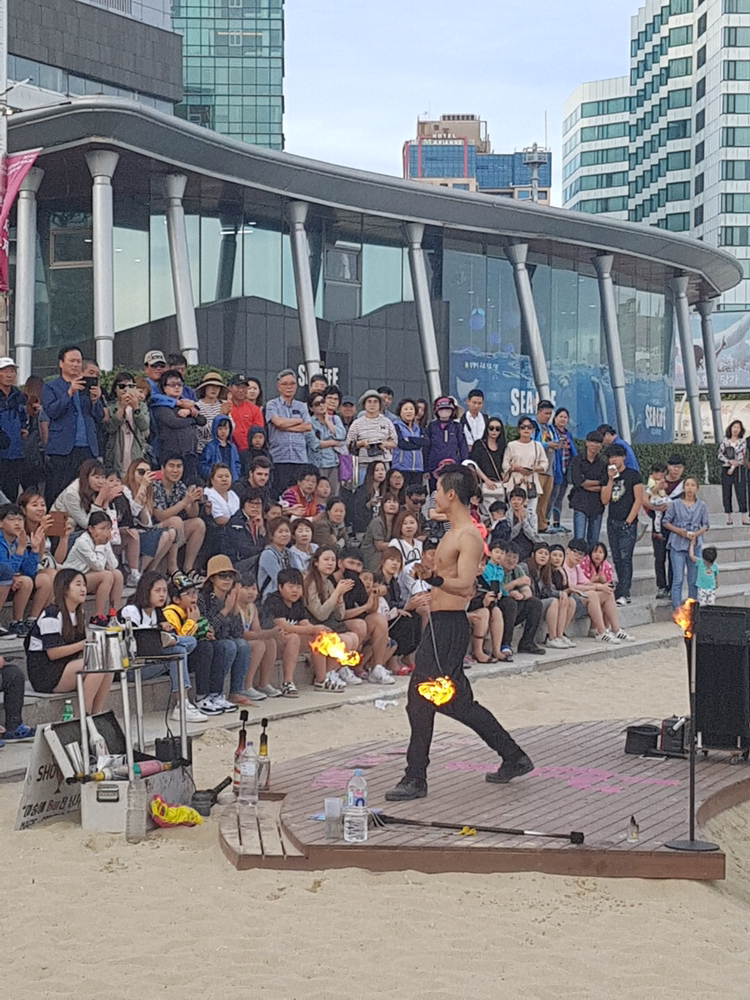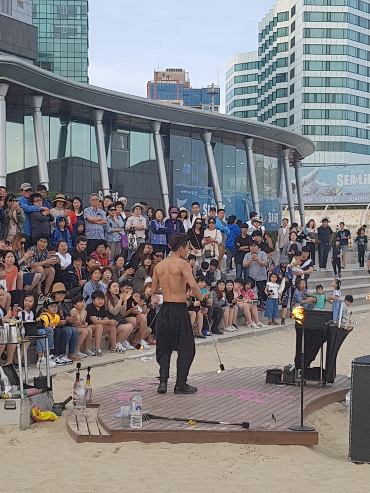 바람이 많이 불어서 불쇼를 하기 어려운 조건이었음에도 불구하고 땀 흘리며 멋진 공연을 보여준 박종원 마술사님의 모습이 정말 멋있어서 발길이 떨어지질 않았답니다.