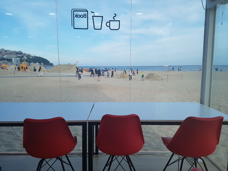 이 카페에서는 사회적기업인 (주)유즈드북이 공공 도서관 등에서 기부받은 책을 선별 및 분류하여 관광객들이 읽을 수 있도록 제공하고 있어요. 중고책은 저렴한 가격으로 판매되어 작가와의 만남, 비치북 마켓 등 해운대해수욕장에서 진행하는 문화행사로 환원한다고 해요~! 참 좋은 아이디어이자 서비스인 것 같습니다.