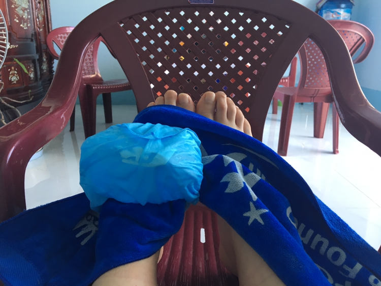 발이 땡땡 부으니 걸을 때 불편하고, 이 상태에서 더 무리하면 아파질 수 있기 때문에 냉찜질을 하며 쉴 수 있도록 해주셨습니다.