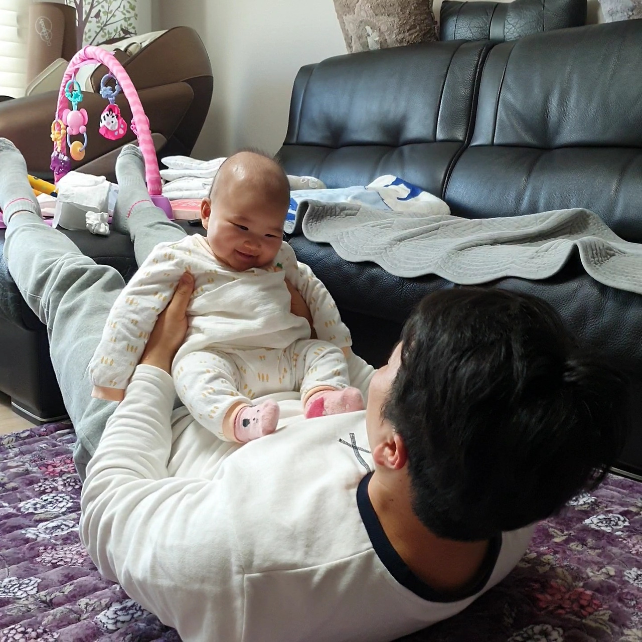 배 위에 올려놓고 고개를 들어 까꿍~하면 좋아서 깔깔깔!