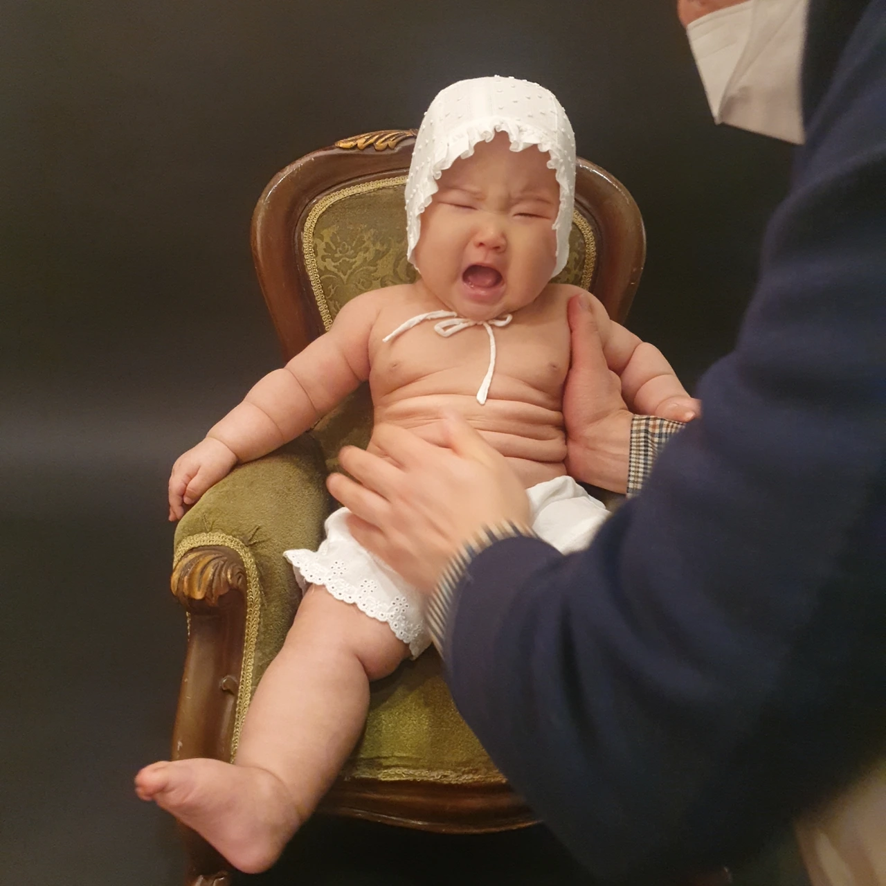 그런데 산후조리원 연계 스튜디오에서 무료 촬영한 50일 사진을 보니까 그때의 빵이는 정말 작더라. 우리 인생의 모든 순간이 그렇지만 다시는 돌아갈 수 없는 시간이라고 느꼈어. 그러다 부담 없는 가격으로 촬영할 수 있는 사진관을 소개받아서 150일이 다된 빵이 모습을 담을 수 있었네. 장군 같은 표정과 포즈로 촬영 잘하고 나서 울음을 터뜨리더라고. 그 모습이 너무 귀여워서 엄마는 그 와중에 사진과 영상 촬영을 했고. 호호호.