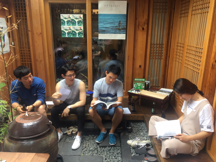 8일 토요일 오후 3시, 서촌 소풍 게스트하우스에 도착했습니다. 바로 눈 앞에 두고 위치를 파악하지 못해 골목길을 뱅글뱅글 돌다가 들어가게 되었어요. 웰컴 맥주로 환영해주셔서 더위를 식히며 함께할 사람들이 오기를 기다렸습니다. 포항, 광양, 서울, 판교 다양한 지역에서 모이기 때문에 사정상 조금 늦은 분들이 있기도 했어요. 그렇지만 서두르지 않고 천천히 기다려보았습니다. 이번 주말 만큼은 널널하고, 여유있게 보낼거니깐요~
