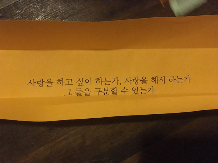 그 중에서 저에게 가장 와닿았던 질문은 '사랑을 하고 싶어 하는가, 사랑을 해서 하는가. 그 둘을 구분할 수 있는가.'였습니다. 어렵기도 한데, '왜 나는 너를 사랑하는가?'라는 알랭 드 보통의 책 제목이 생각 나기도 했어요..