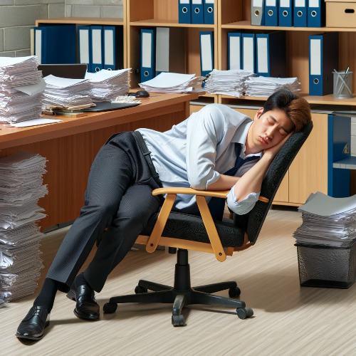 우잉? 나는 퀭한 눈으로 두리번 거렸다. 난 수면 의자에서 삐딱하게 누워서 떨어지기 일보 직전이었고, 청소하시는 아주머니가 나를 받치고 있었다.