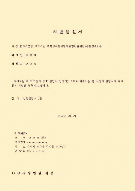 나는 수사기록을 뒤져 피해자에게 연락을 했다. 피해자가 범인의 처벌을 원치 않는다는 ‘처벌불원서’를 작성해 주면 재판에 유리하다.
