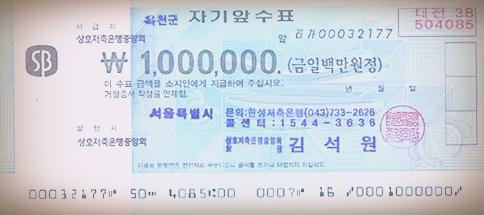 “변호사님, 그리고 말씀주신 손해배상금. 수표로 끊어 왔습니다.”
