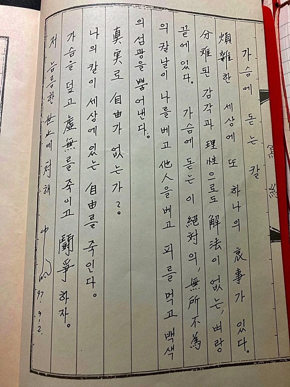 손으로 쓰던 것이 이제는 컴퓨터로 기록하는 차이가 있다. 그 사이 잡다한 글을 모아 책도 냈고(팔리지 않아 이미 절판되었지만 ㅎㅎ)…. 여전히 뭔가를 기록한다. 97년, 35세.... 그 푸른 시절에 쓴 안타까운 삶의 기록을 본다.