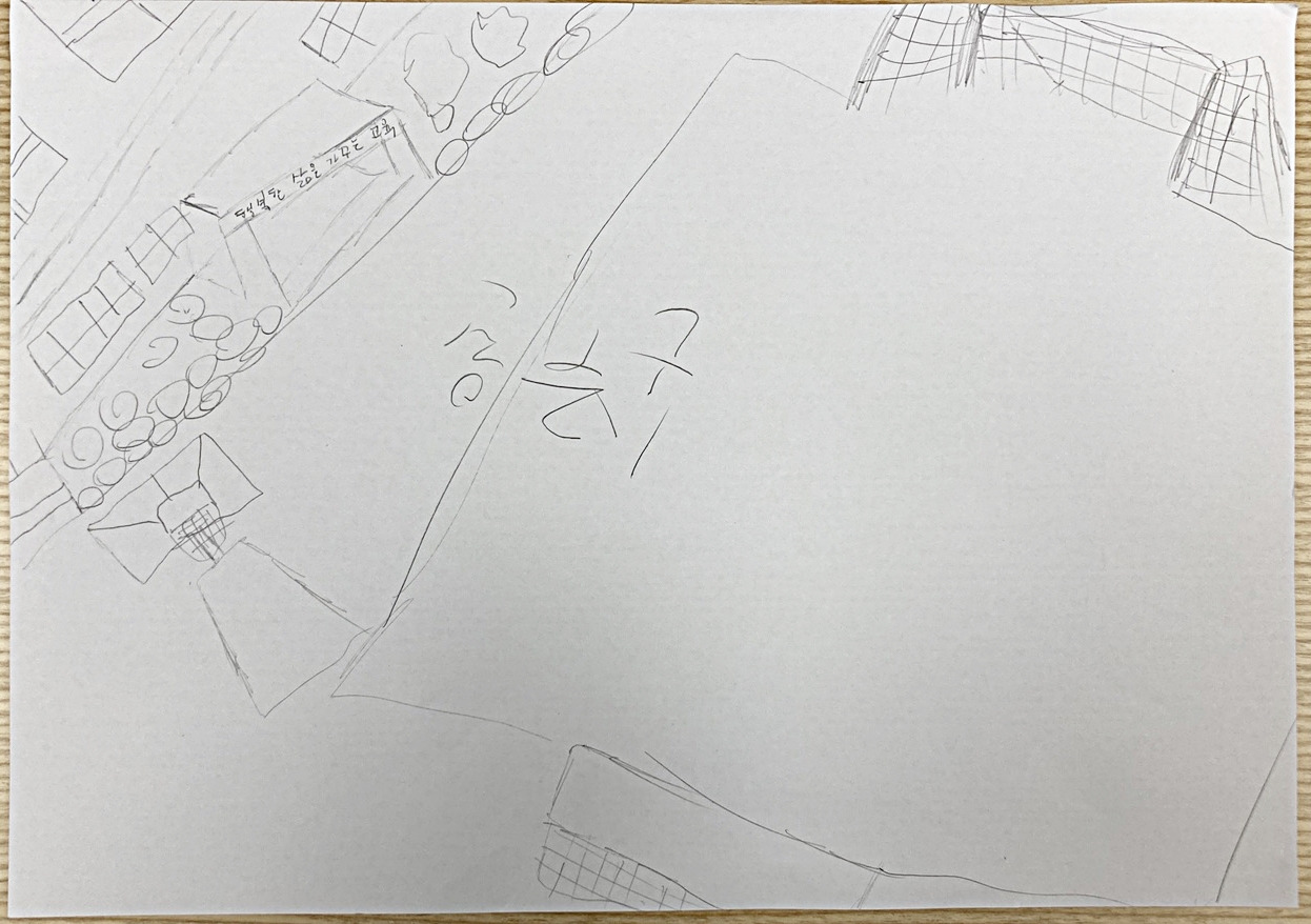 학교라는 독립적이면서 고정된 작은 사태(Sachverhalt)에 대한 각각의 아이들이 가진 각자의 판단과 해석으로 만들어진 학교 그림이 ‘보편자’와 ‘개별자’를 희미하게 익힌 아이들에게 어떤 방식으로 다가갈 것인지 다음 시간이 기대된다. 결과물을 가지고 해석하는 시간은 의외로 진지하다.