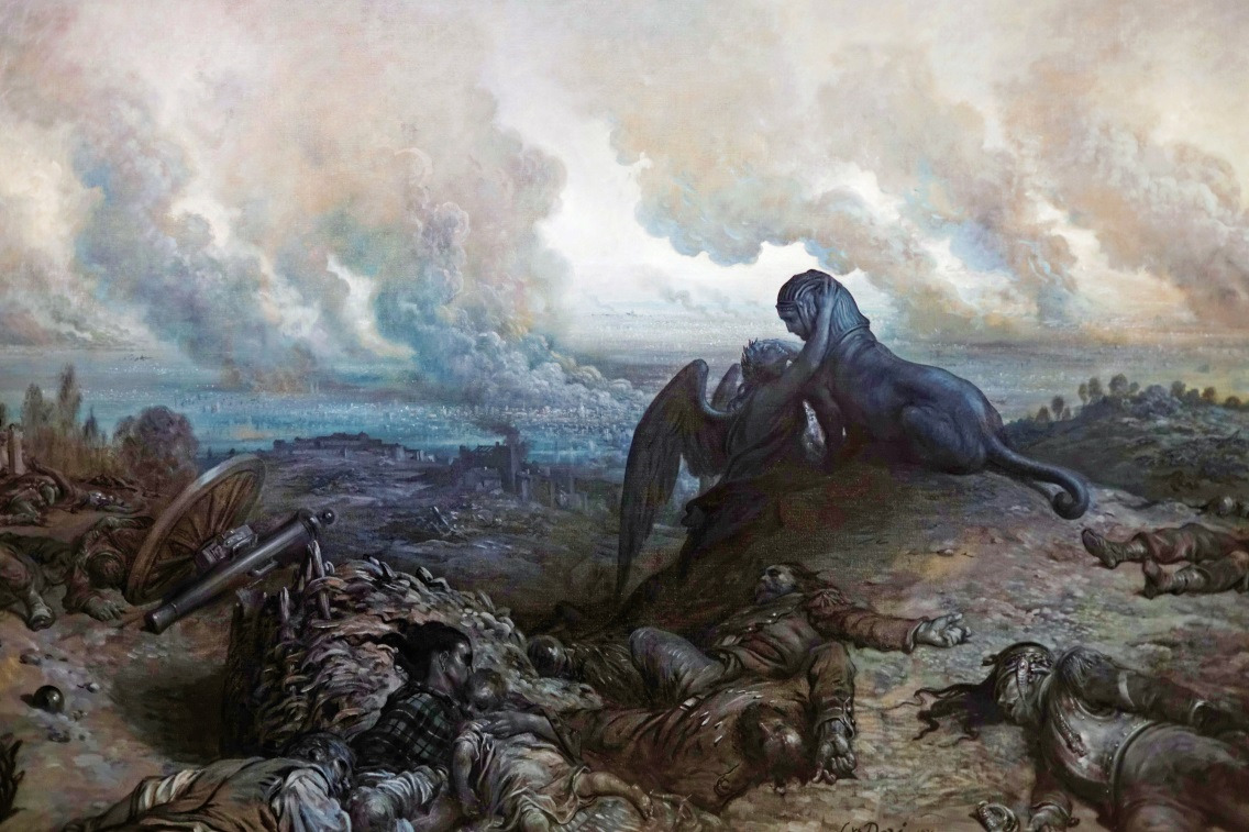 도레 그림의 배경이 되는 보불전쟁은 프랑스 제국과 프로이센 왕국의 전쟁으로서 프랑스는 이 전쟁에서 참패하여 제2제정이 무너졌고 제3공화국이 세워졌다. 승전국인 프로이센은 독일 연방 내 모든 영주 국을 통일하여 독일 제국(제2제국)을 세웠다. 프랑스 제2 제정을 세운 나폴레옹 3세는 나폴레옹 보나파르트의 동생 루이 보나파르트가 나폴레옹의 의붓딸 오르탕스와 결혼하여 1808년에 태어난 아들이다. 실제는 남이지만 법률적으로는 근친의 결혼으로 태어난 아들이다.