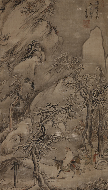 신잠의 그림을 보면 뒤에 따르는 시종은 추운 겨울에 맨 몸으로 걸어야 하니, 얼마나 싫어하는지 화면에 그 느낌이 고스란히 묻어난다. 나귀를 타고 다리를 건너 앞서 가던 선비는 고개를 돌려 시종에게 어서 오라고 한다. 에이 야속한 양반!!