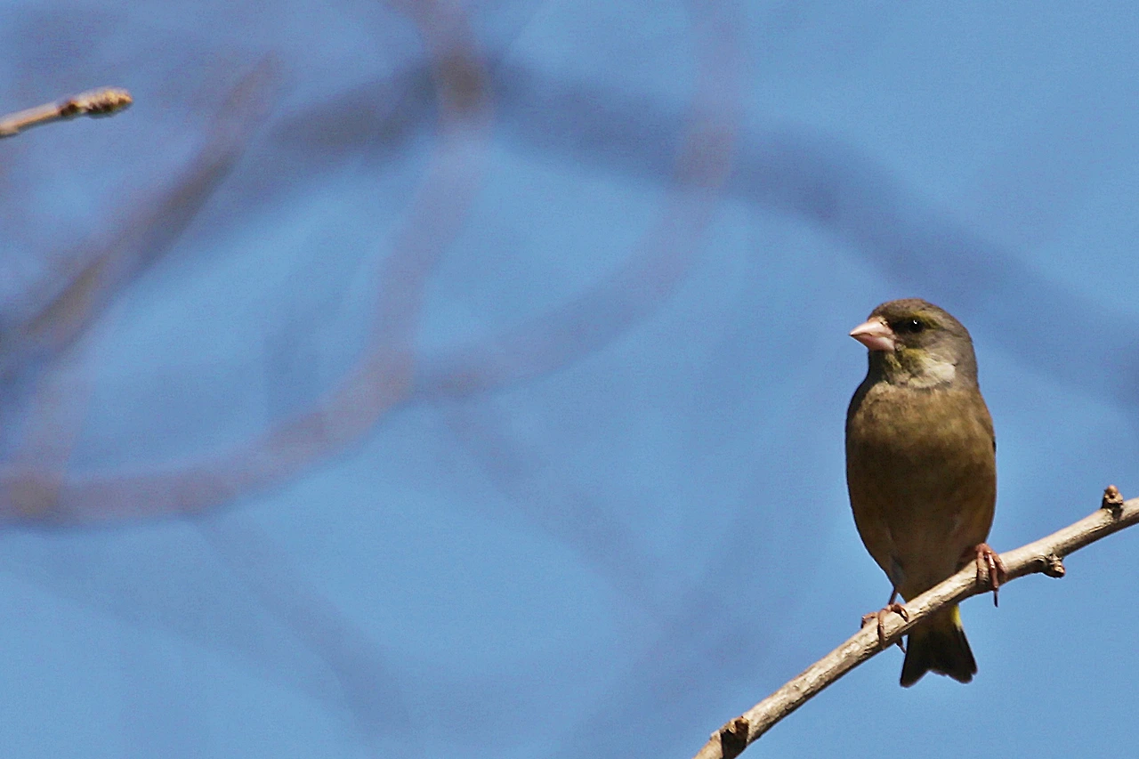 2017년 3월 16일 점심 식사를 마치고 학교 주변을 산책하다가 가지에 앉은 새 한 마리를 보다. 굳은 부리 탓인지 묵언 수행하는 수행자처럼 느껴졌다. 새는 하늘로 날아오를 때 가장 자유롭다.