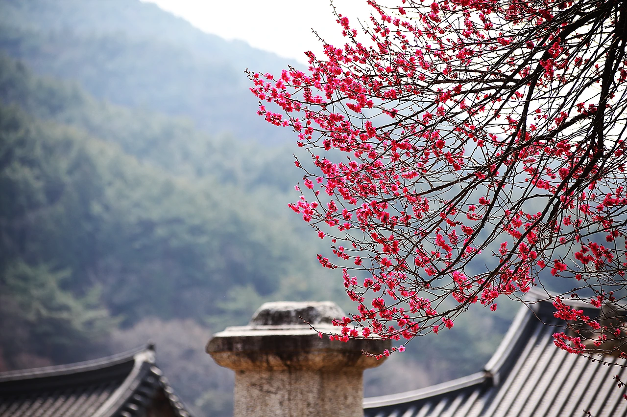 2017년 3월 25일. 구례 화엄사 홍매를 보다. 멀리서 보면 너무 붉어 ‘흑매’ 라 불리기도한다. 저 꽃, 아마 오늘쯤엔 주말에 내린 비에 흔적도 없이 사라졌을 터, 우리의 삶 또한 그와 같은 것이다. 해 마다 피어나는 홍매지만 또, 해 마다 스러지는 홍매가 아닌가? 다만 억겁의 시간을 관통한 한 줄기 바람만 탑 그림자와 홍매, 그리고 풍경 사이를 무심히 오가고 있을 뿐.