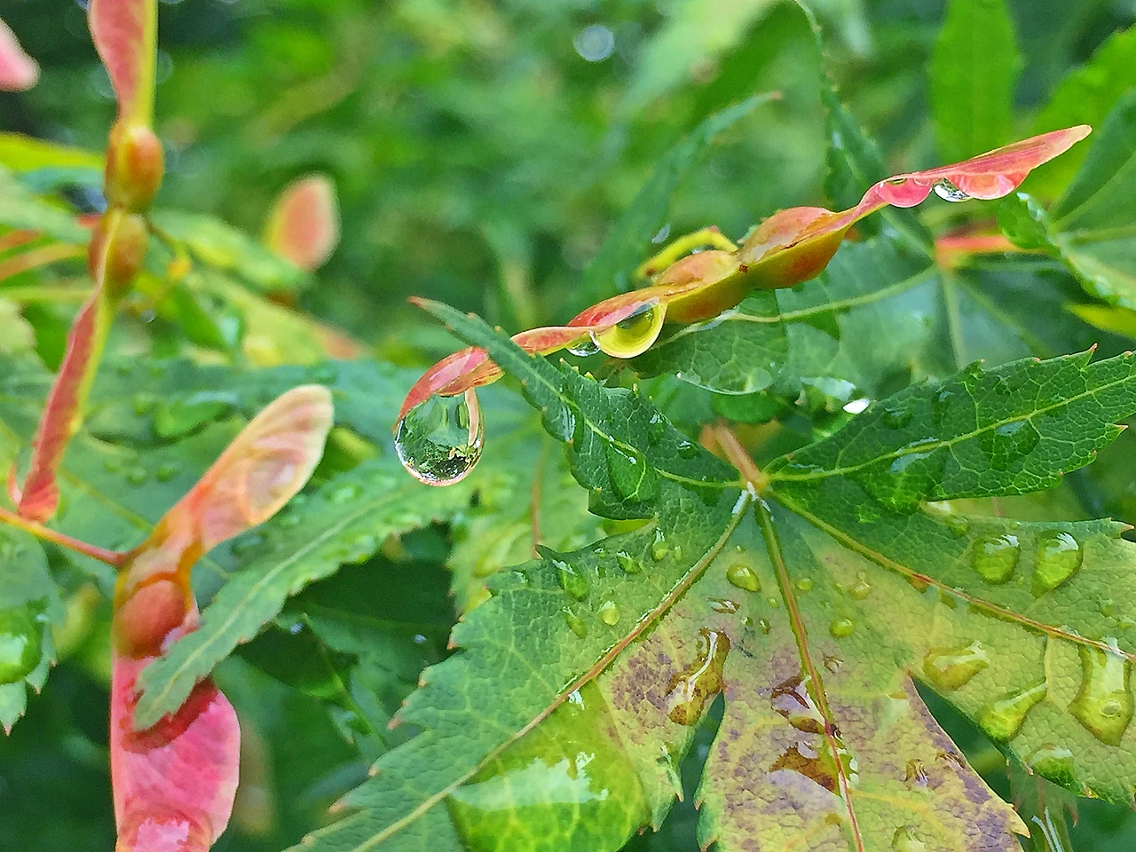 2017년 6월 29일 목요일 아침. 학교 주차장에 차를 세우고 나뭇잎을 보니 지난밤 내렸던 비가 단풍나무 잎에 물방울로 달려 있다. 그리고 목요일 하루 종일 비가 내리지 않고 날씨는 후텁지근했다. 오후가 되면서 구름들이 몰려들더니 밤에는 비가 제법 내렸다. 내내 결구를 완성하지 못하다가 문득 토요일 밤이 되어서야 완성한다.