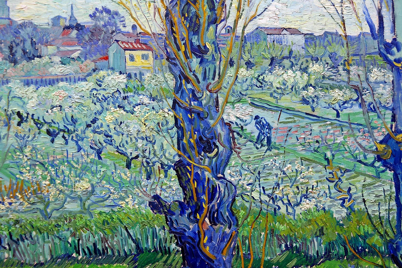 그런가 하면 소나무를 화면 가운데 세워 화면을 이등분하고 초가 반대쪽은 거의 비워두었다. 이렇게 화면 가운데 소나무를 세운 것은 매우 실험적인 구도인데 시기적으로 좀 더 뒤이기는 하지만 서양의 고흐도 이런 그림을 그린 적이 있다.(아를의 전망 Vue d'Arles, 1889) 이것은 다름 아닌 전기가 추구했던 삶의 모습이었으리라.