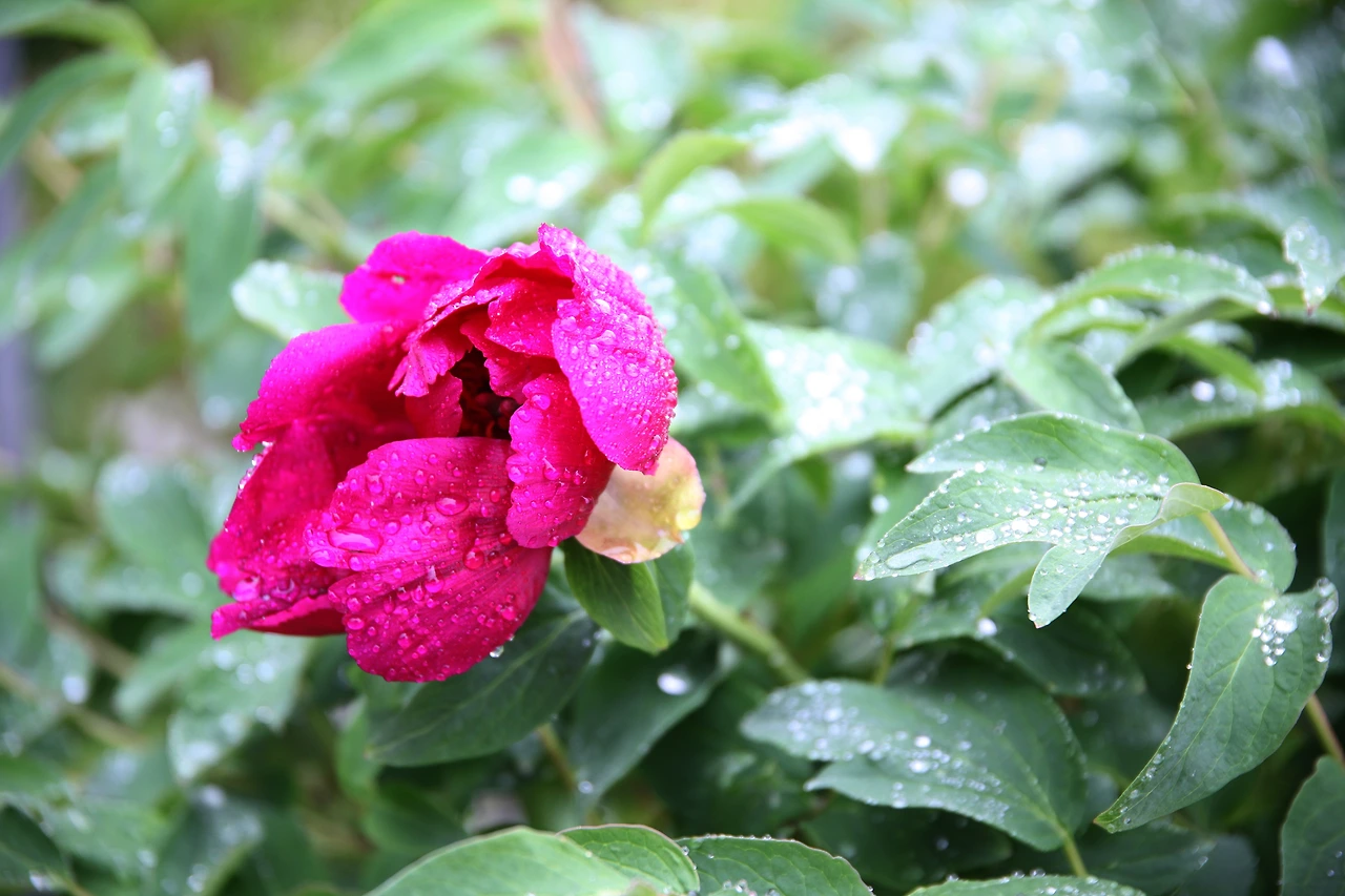 아카시아 흰 꽃과 더불어 붉은 모란꽃이 번성하고 있다.