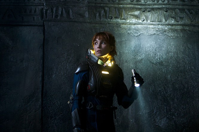 주인공 엘리자베스 쇼는 에일리언의 리플리(시고니 위버)와 별 차이 없는 캐릭터로 그려진다. 에일리언을 본 사람이라면 주인공의 역할에 그 어떤 신선함도 느낄 수 없다. 배속에 외계생명 설정조차 너무 비슷해서 에일리언 속편을 보는 느낌이었다. 아니 어쩌면 이 영화는 에일리언의 프리퀄 인지도 모른다. 왜냐하면 영화적 공간 내부에서 시간 배경은 이 영화가 에일리언보다 더 과거이기 때문이다. 어쨌거나 인류기원을 밝히기 위해 우주를 향한 그녀의 노력은 허망하게 무너지는데 이것은 사실, 관객들이 처음부터 예상할 수 있는 것이었고 과연 그녀가 그 과정에 어떻게 다가가는지를 지켜볼 뿐이었다. 그리고 마침내 혼자 살아남아, 에이리언의 ‘리플리’ 대사와 별 반 차이가 없는 인류의 창조자를 찾아 다시 길을 떠나겠다는 말로 영화를 끝내고 있다. 인류의 기원을 찾아 다시 여행을 떠나는 설정은 리들리 스콧 감독 자신이 인류 창조에 대한 의문이 계속되고 있음을 암시하는 것은 아닐까?