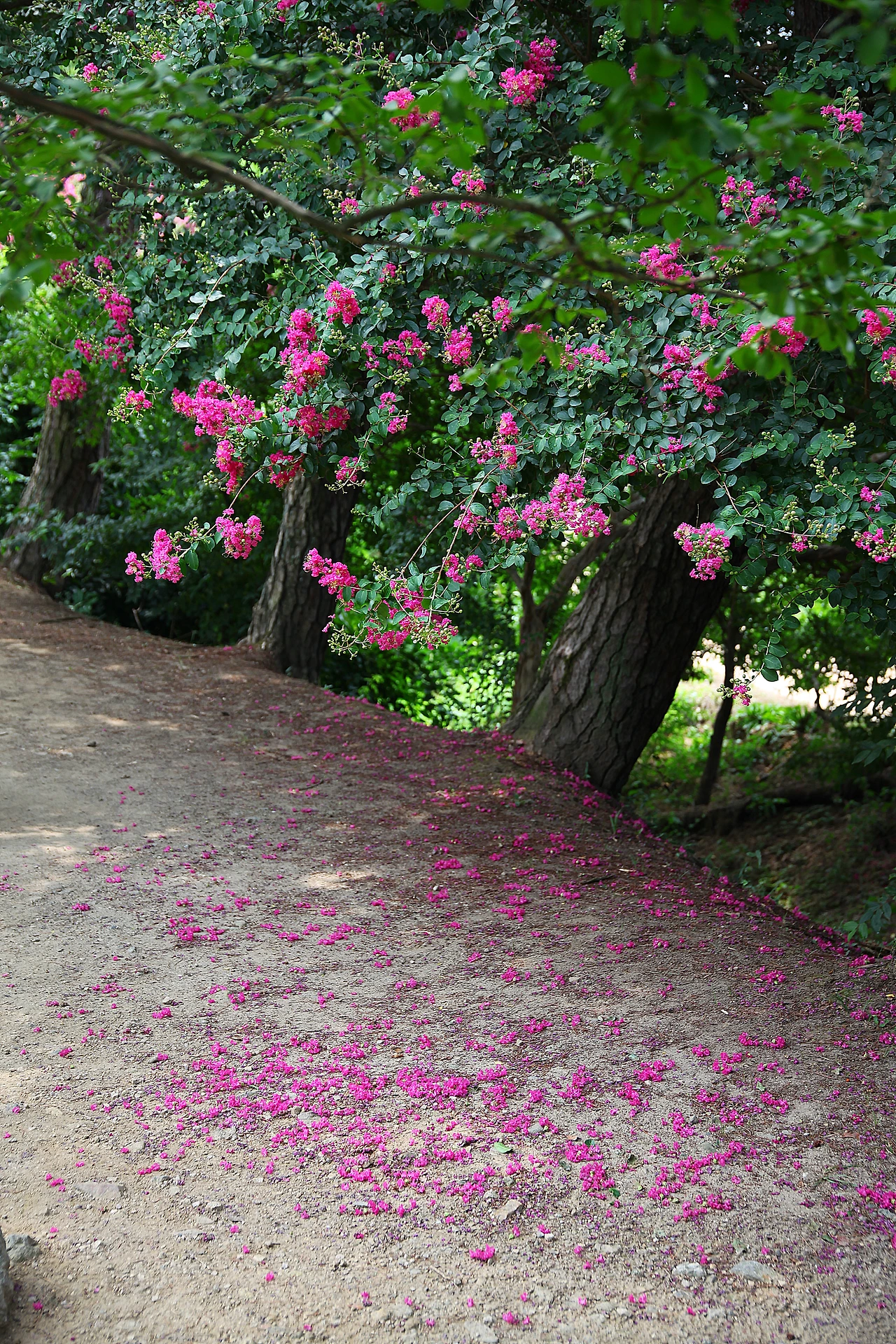 2018년 8월 7일 담양군 소재 명옥헌 苑林에 피어 있는 배롱나무 꽃이다. 園林과 한자는 다르지만 같은 뜻이다. 정확하게 조사해 본 바는 없지만 명옥헌의 苑林(원림)을 제외하고는 대부분 園林(원림)을 사용하고 있다. 하지만 둘의 뜻은 비슷하다. 본래 苑林이란 집터에 딸려있는 정원이지만 그 개념은 무한하게 확장될 수 있다. 자미화라고 불리는 배롱나무 꽃이 이 시기에 흐드러지는데 어찌 된 일인지 올해 여기 배롱나무 꽃은 드문 드문 피거나 혹은 아예 꽃 봉오리조차 없다. 아마도 날씨 탓인지도 모르겠다.
