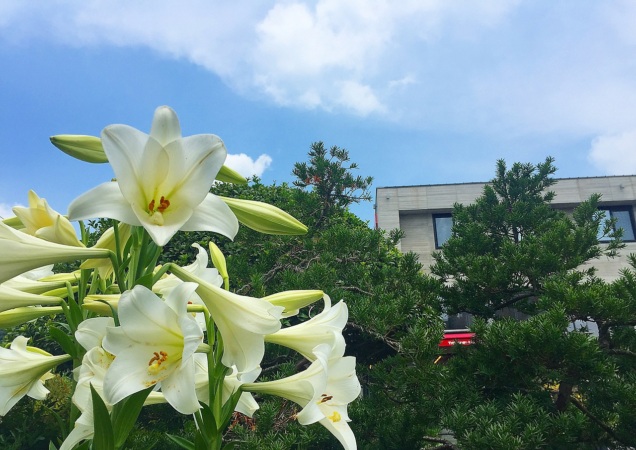 2019년 6월 25일. 뜨거운 여름날, 점심을 먹고 학교 주변을 돌아보니 어느새 백합이 흐드러져있다. 학교 울타리에 심겨 있는 남천 꽃도 흐드러졌다. 두 꽃은 각자 자신의 자리에서 자연의 모습 그대로 서 있지만 분별심 가득한 인간인 나는 두 꽃의 모양과 크기, 향기와 이름으로 분리하여 생각한다. 하지만 좀 더 깊이 생각해보니 두 꽃은 인간의 눈으로 보아 다를 뿐, 본시 그 의미야 다를 것이 없다. 형태와 주변에 집중하는 인간들의 어리석은 버릇 때문에 모든 것이 달라졌으나 본질은 전혀 다르지 않을 것이다.