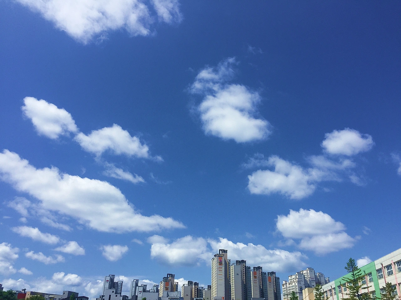 2019년 7월 12일 오전, 초복. 2교시 수업을 하기 위해 3학년 별관으로 향하던 중 하늘을 보니 맑은 하늘과 구름의 조화가 기막히다. 마음은 벌써 하늘과 구름을 따라 천지를 떠돈다. 초복의 열기가 천지에 가득하다. 사진을 찍고 수련과 함련은 금방 생각했으나 나머지는 며칠을 전전긍긍하다가 마침내 5일이 지나고서야 억지로 뭉쳐 놓았다. 갈수록 어려워진다.