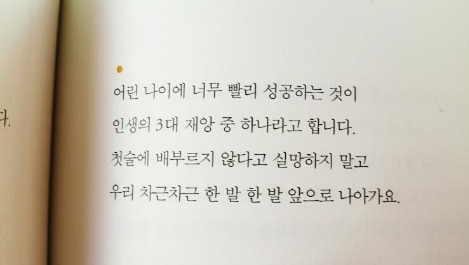 너무 이른 나이에 성공은 교만에 빠지기 쉽고 본인의 실력을 과대평가하는 오류의 자세를 배운다.